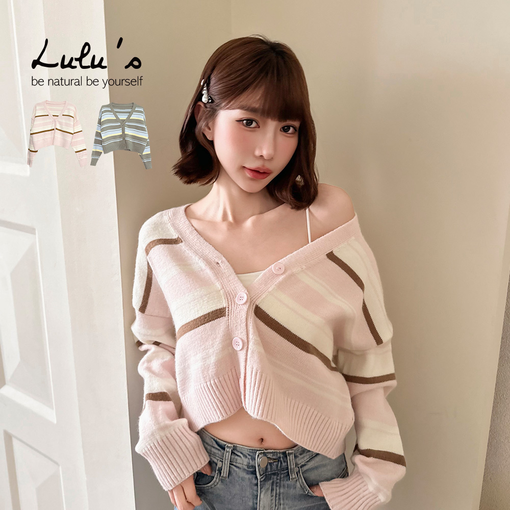 熱賣中🔥 即將售完直播優惠/溫柔系V領針織橫紋短版上衣2色【A01250859】