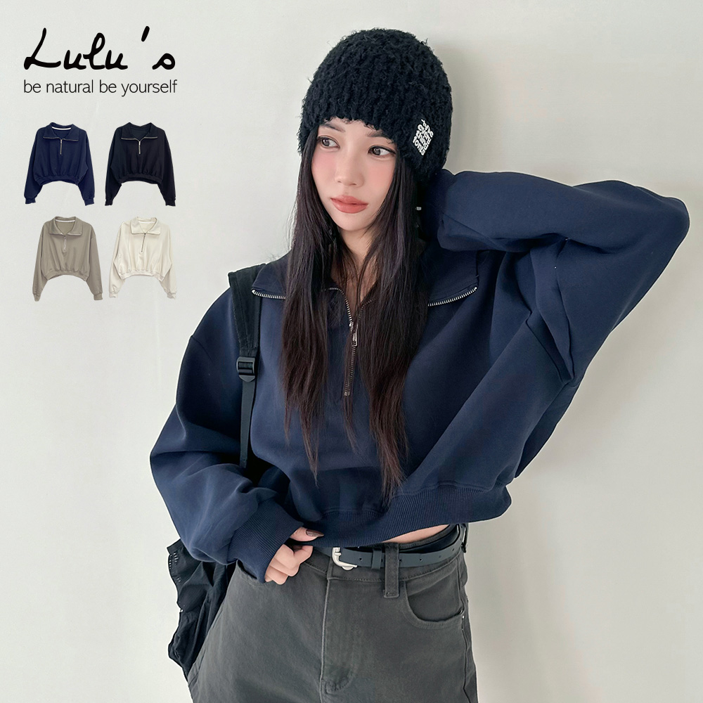 熱賣中🔥 即將售完直播優惠/翻領半拉鍊短版長袖上衣4色【A01250856】