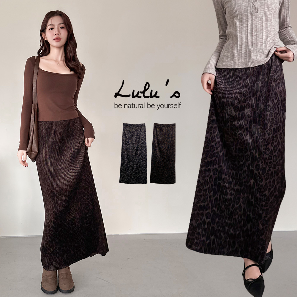 熱賣中🔥 即將售完直播優惠/立體直壓紋腰鬆緊豹紋長裙2色【A05250099】