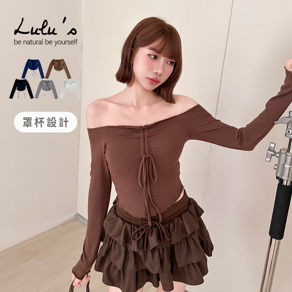 熱賣中🔥 即將售完特價/木耳邊一字領胸抽繩罩杯BRATOP上衣5色【A01250896】