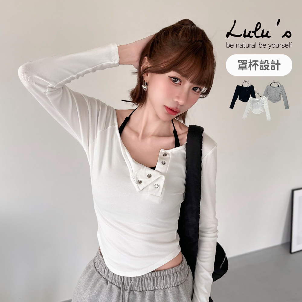 熱賣中🔥 即將售完直播優惠/兩件式斜肩排釦上衣+掛脖罩杯BRATOP背心3色【A01250898】