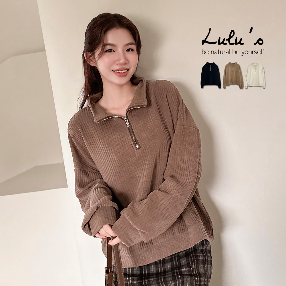 熱賣中🔥 即將售完直播優惠/韓系壓紋半拉鍊立領上衣3色【A01250908】