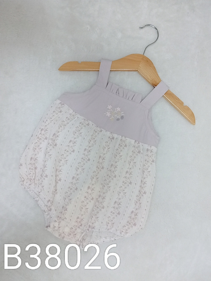 熱賣中🔥 即將售完B38026_I5_紫底花朵刺繡拼接直條碎花包屁衣