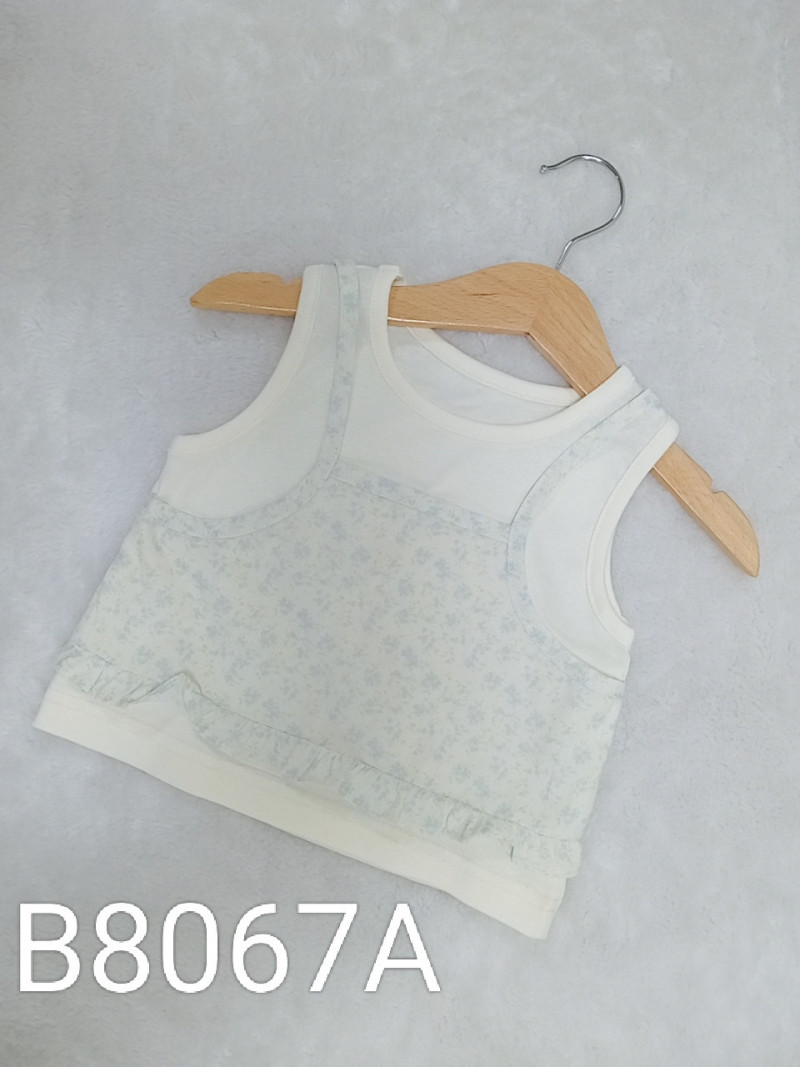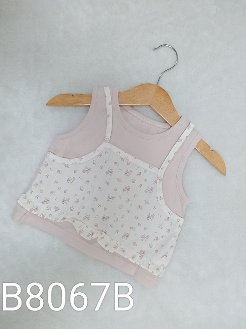 熱賣中🔥 即將售完B8067B_J2_粉底白色粉碎花小花邊假兩件背心