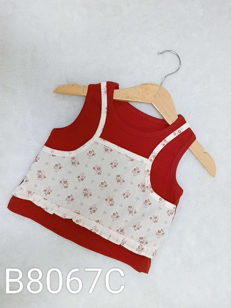 熱賣中🔥 即將售完B8067C_J3_紅底杏色紅碎花小花邊假兩件背心