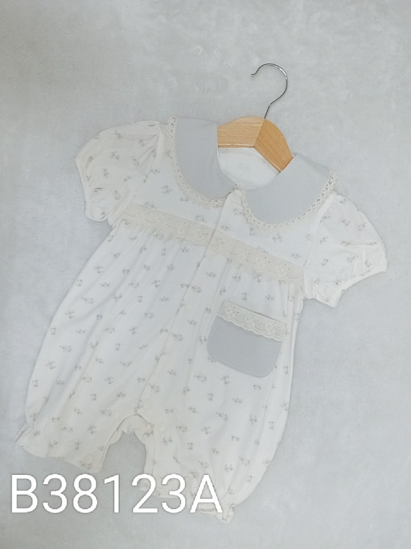 熱賣中🔥 即將售完B38123A_J3_杏底藍色碎花通花邊口袋翻領爬服