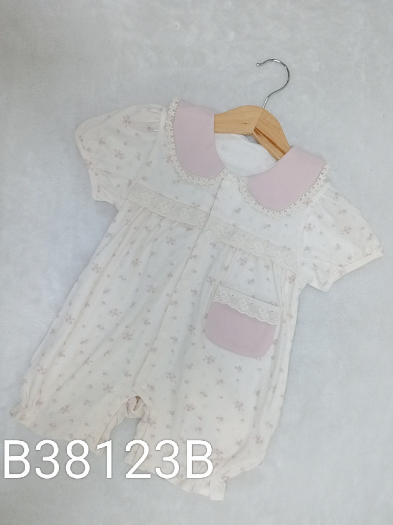 熱賣中🔥 即將售完B38123B_J4_杏底粉色碎花通花邊口袋翻領爬服