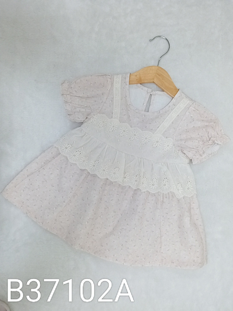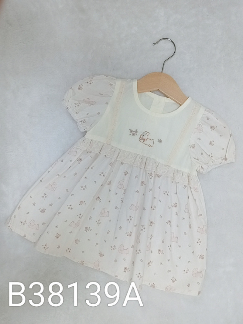熱賣中🔥 即將售完B38139A_K12_杏底滿版粉花兔子刺繡通花蕾絲洋裝