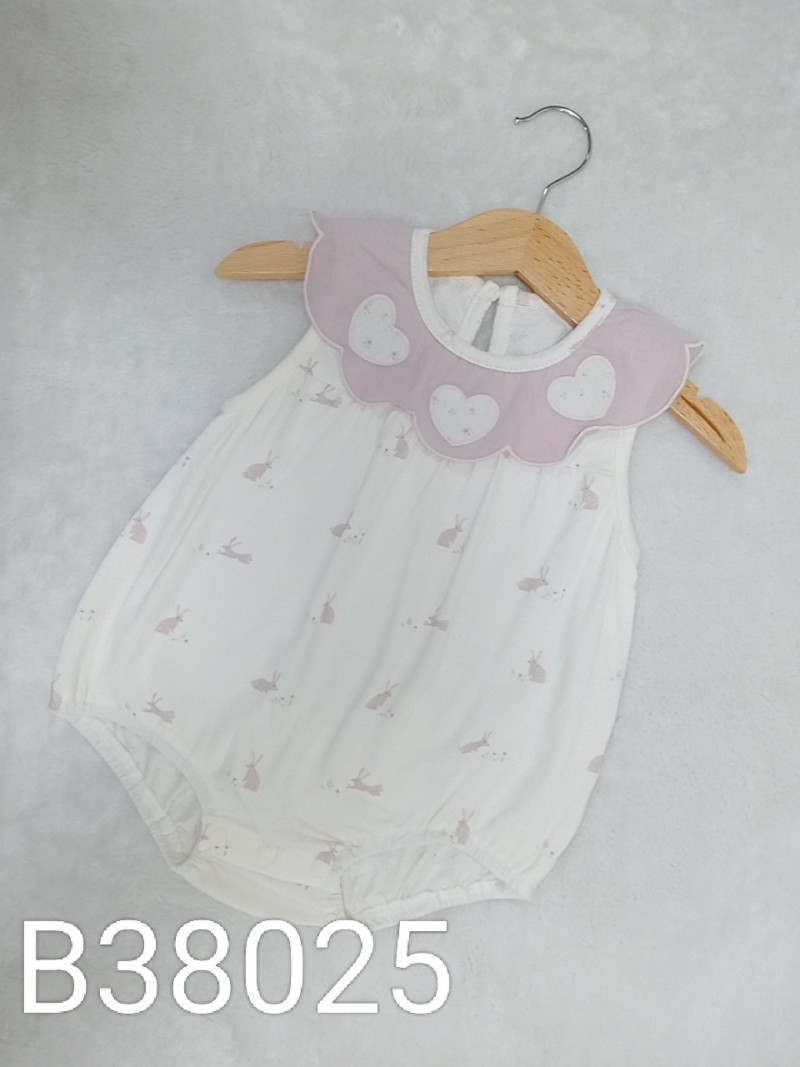 熱賣中🔥 即將售完B38025_K5_杏底粉色花領滿版兔子愛心貼布包屁衣