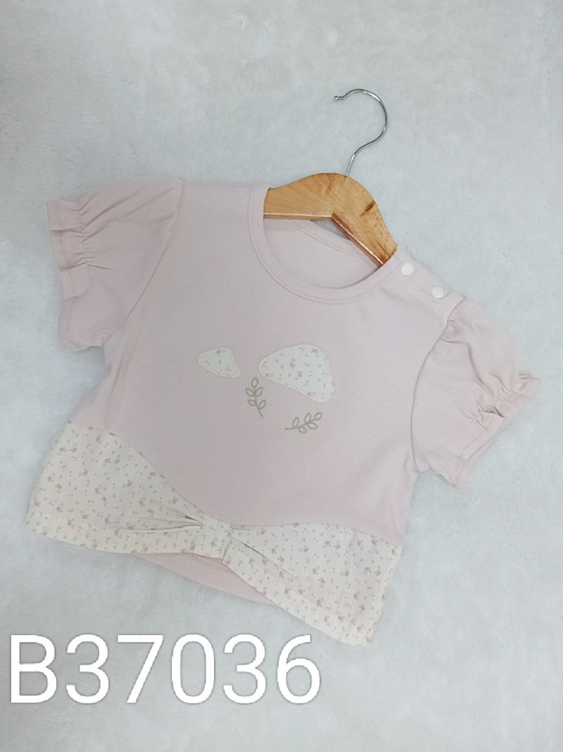 熱賣中🔥 即將售完B37036_L4_粉底蘑菇貼布拼接碎花蝴蝶結造型上衣