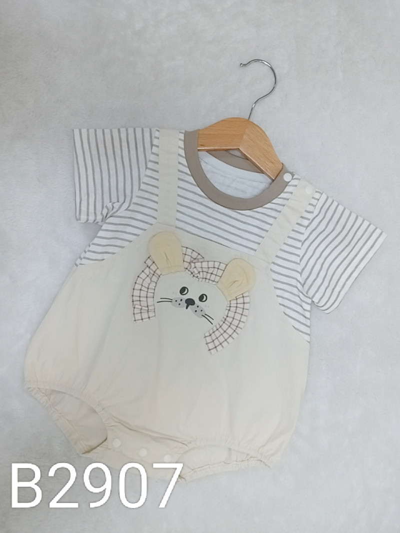 熱賣中🔥 即將售完B2907_L5_灰咖條拼接杏底立體獅子吊帶假兩件包屁衣
