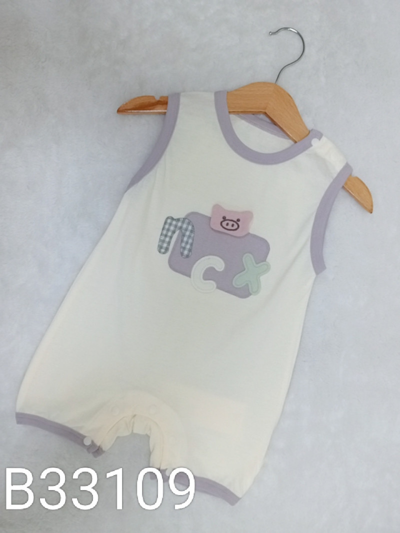 熱賣中🔥 即將售完B33109_I10_杏底紫邊立體小豬英字貼布爬服