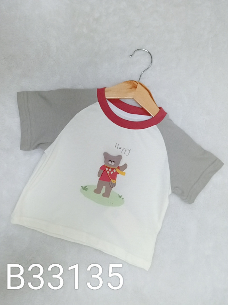 熱賣中🔥 即將售完B33135_J8_杏底紅領立體郊遊小熊拼接灰袖上衣