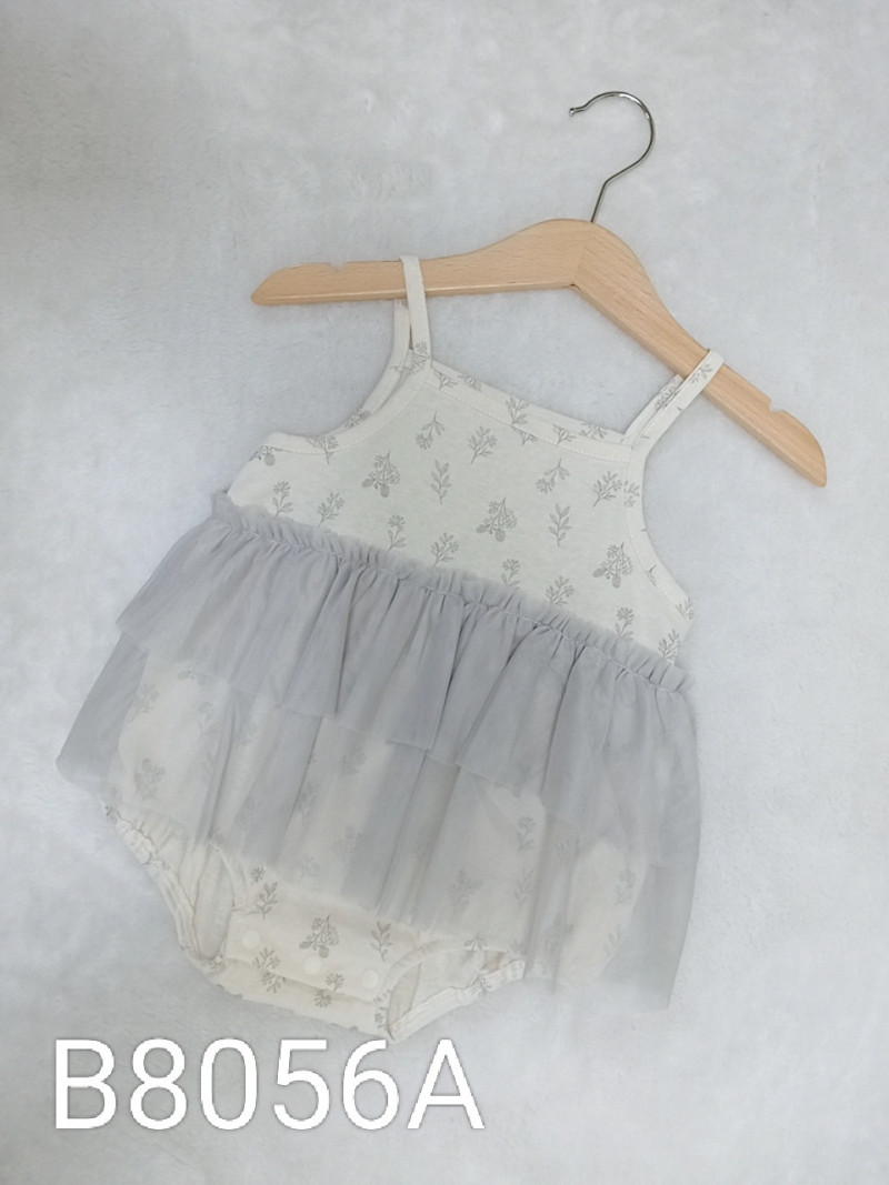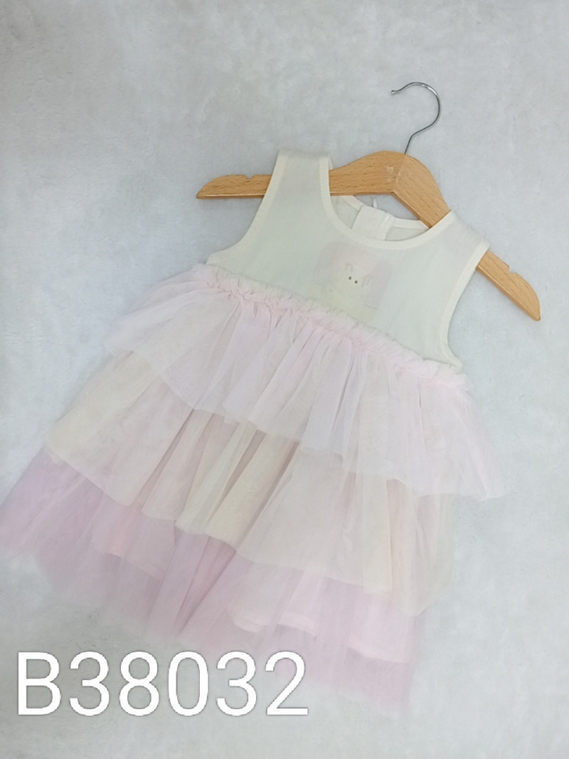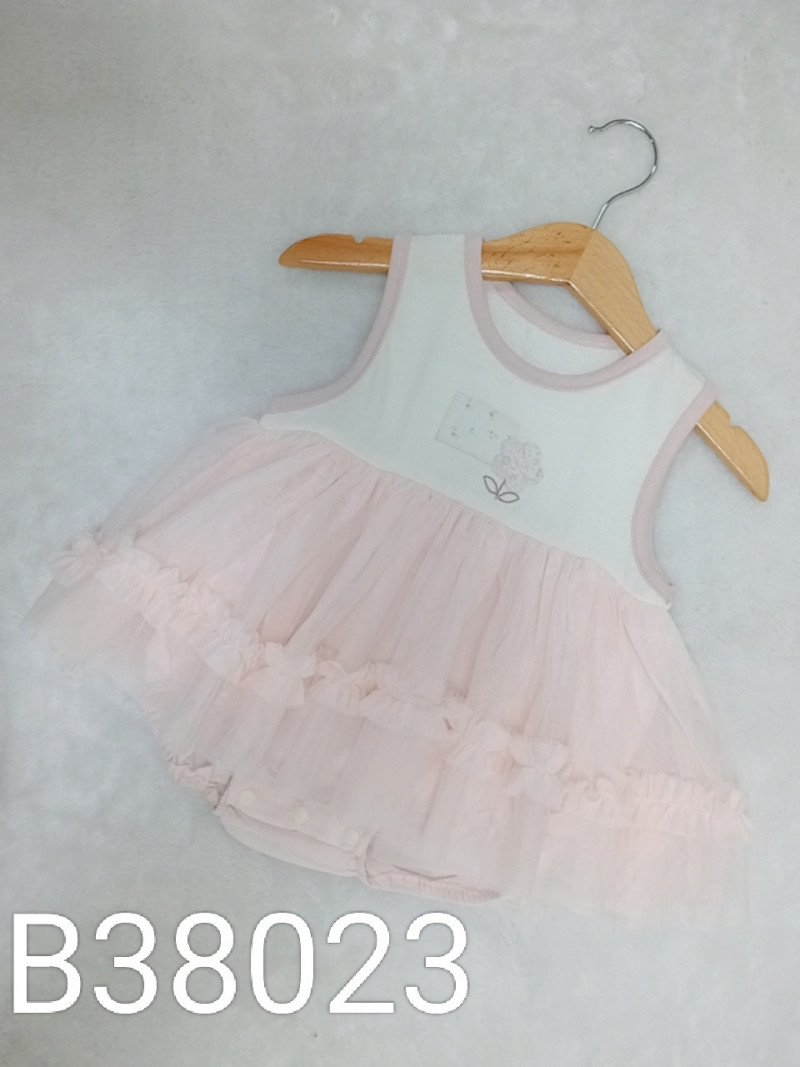熱賣中🔥 即將售完B38023_K9_白底粉邊碎花貼布拼接粉紗裙包屁衣