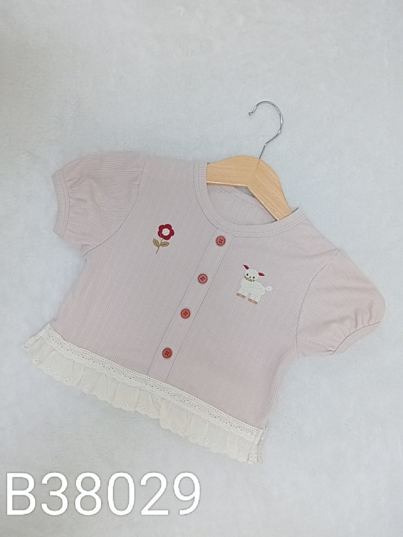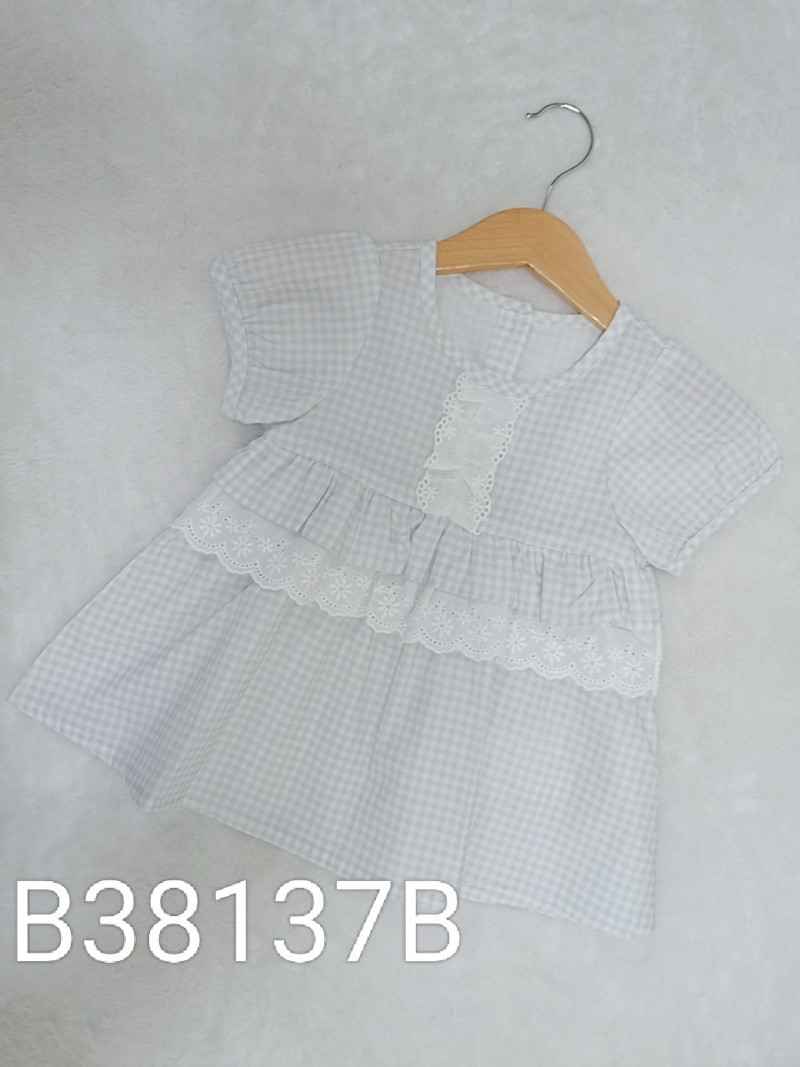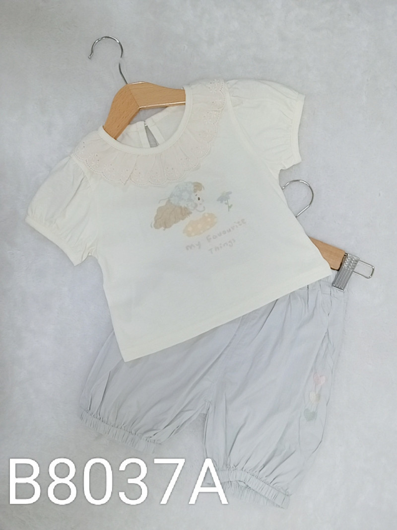 熱賣中🔥 即將售完B8037A_I13_杏底花朵女孩通花領上衣+灰藍褲套裝