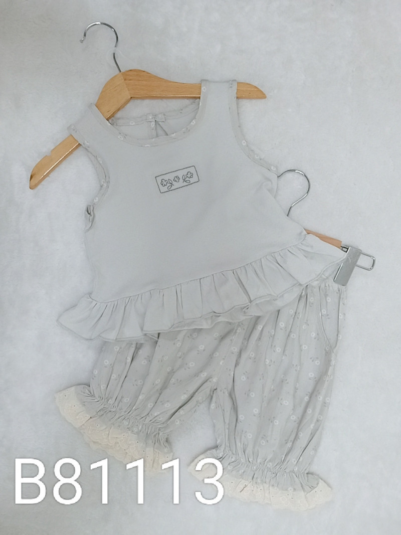熱賣中🔥 即將售完B81113_L8_灰底碎花邊小花貼布花邊背心+灰底滿版碎花通花邊長褲套裝