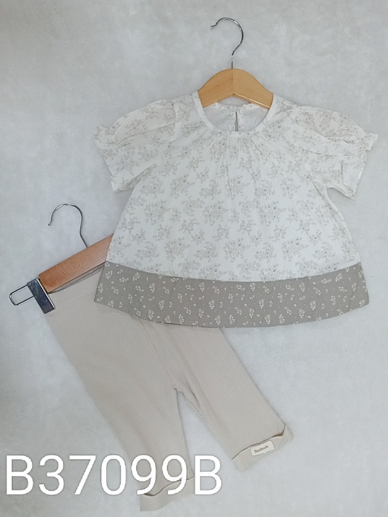 熱賣中🔥 即將售完B37099B_I12_杏底滿版咖碎花拼接咖灰色白碎花上衣+奶底布標內搭褲套裝