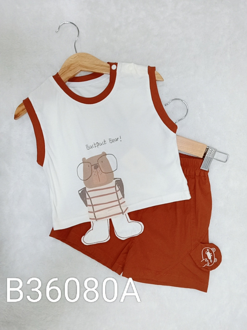 熱賣中🔥 即將售完B36080A_I14_白底紅邊眼鏡小熊立體腳腳背心+磚紅底立體小熊短褲套裝