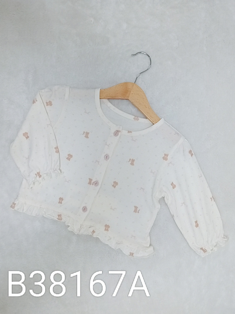 熱賣中🔥 即將售完B38167A_J11_杏底滿版粉碎花小熊花邊排釦外套