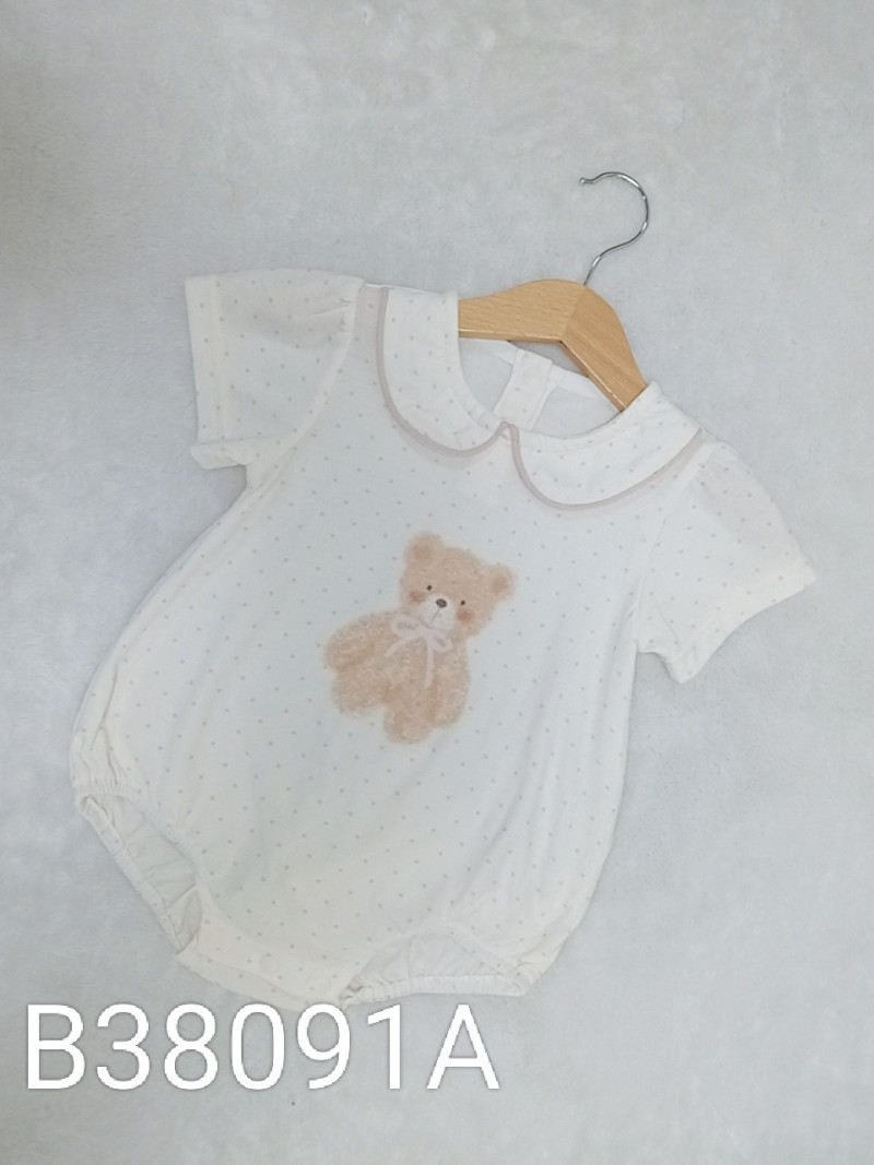 熱賣中🔥 即將售完B38091A_J15_杏底滿版粉點蝴蝶結熊翻領包屁衣