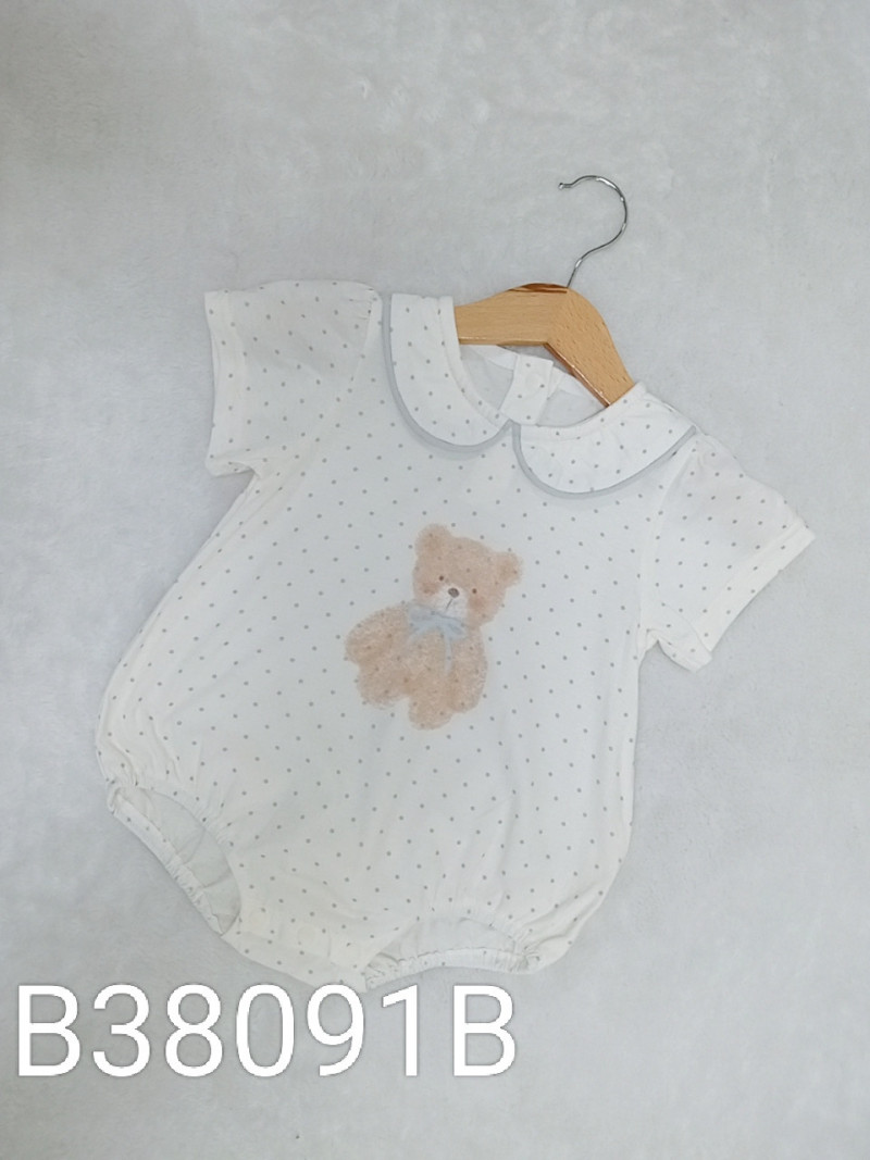 熱賣中🔥 即將售完B38091B_K11_杏底滿版藍點蝴蝶結熊翻領包屁衣