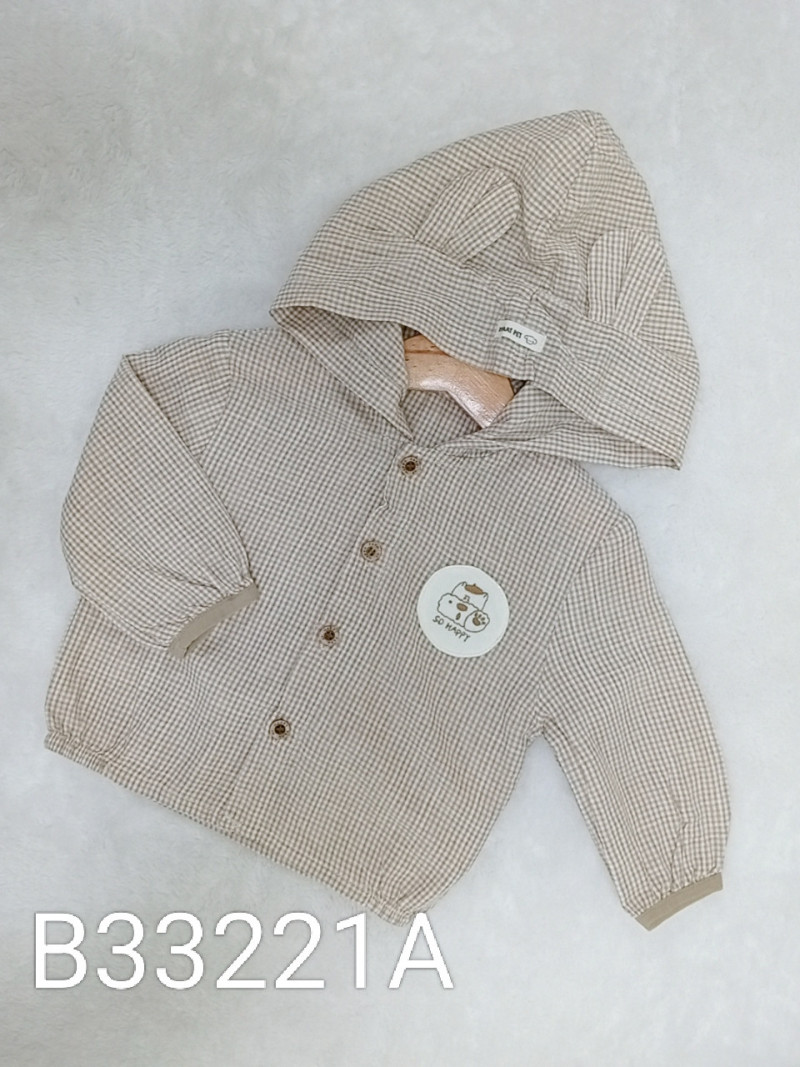 熱賣中🔥 即將售完B33221A_K15_咖色格紋英字帽子狗刺繡貼布耳朵連帽外套