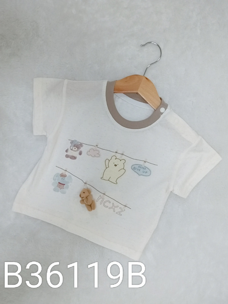 熱賣中🔥 即將售完B36119B_L15_燕麥杏底咖領曬衣熊肩釦上衣(立體小熊可拆)