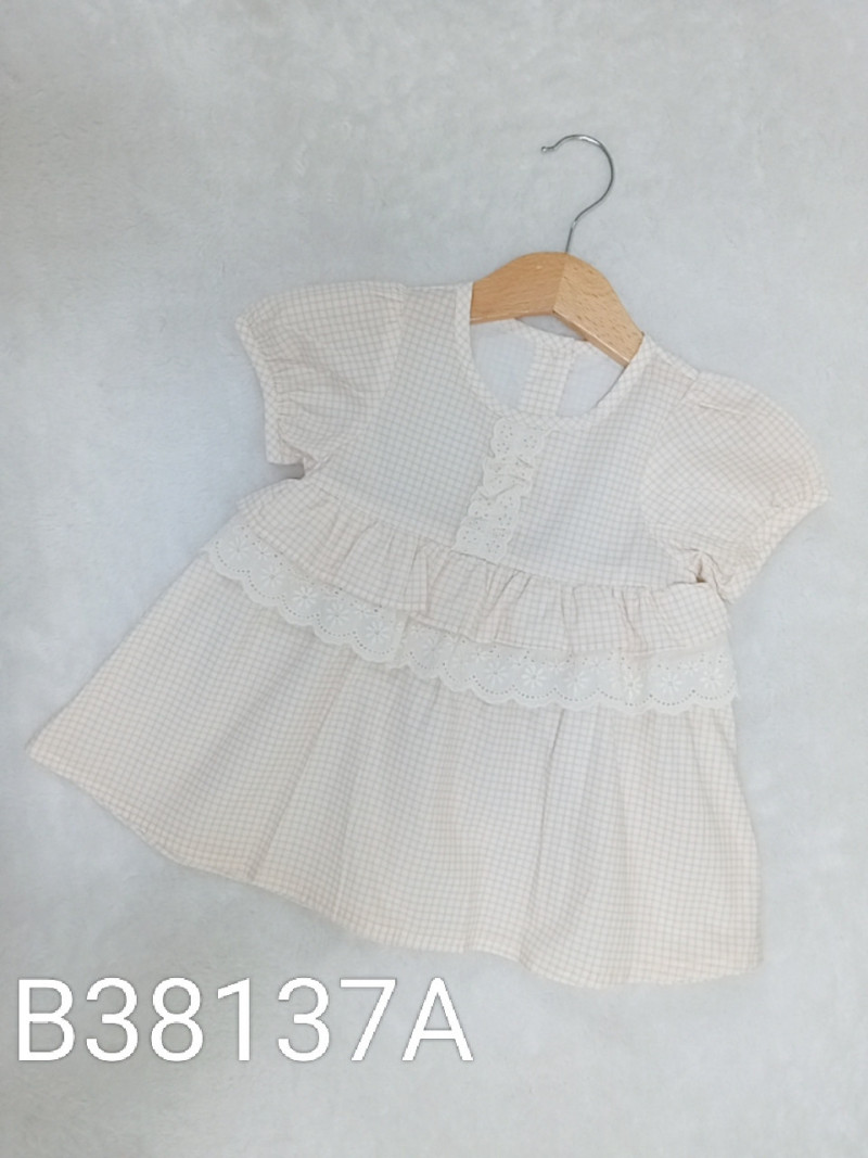 熱賣中🔥 即將售完B38137A_J17_杏底咖條格紋通花蕾絲造型洋裝