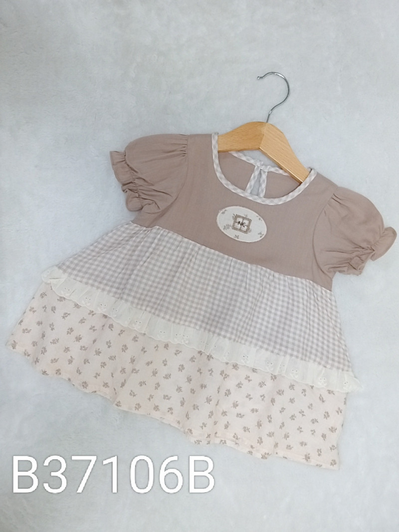 熱賣中🔥 即將售完B37106B_L16_咖底刺繡貼布拼接格紋碎花拼布造型洋裝