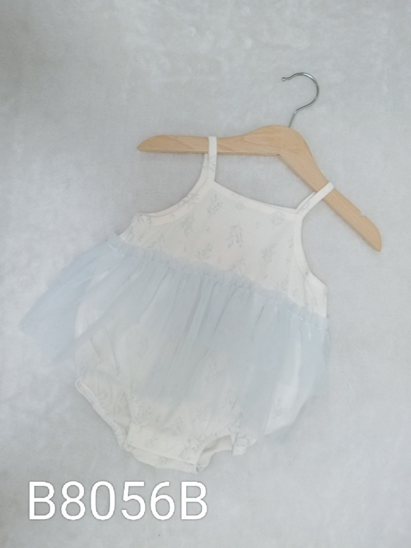 熱賣中🔥 即將售完B8056B_L18_米白底滿版樹枝拼接淺藍網紗細肩包屁洋