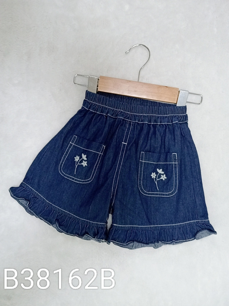 熱賣中🔥 即將售完B38162B_I37_深藍底雙口袋繡花花邊牛仔短褲