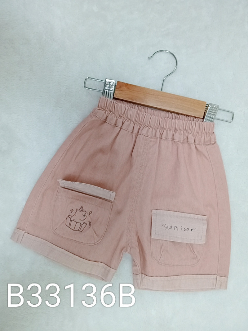 熱賣中🔥 即將售完B33136B_I38_粉底英字帽子禮物熊撞色雙口袋造型反摺褲