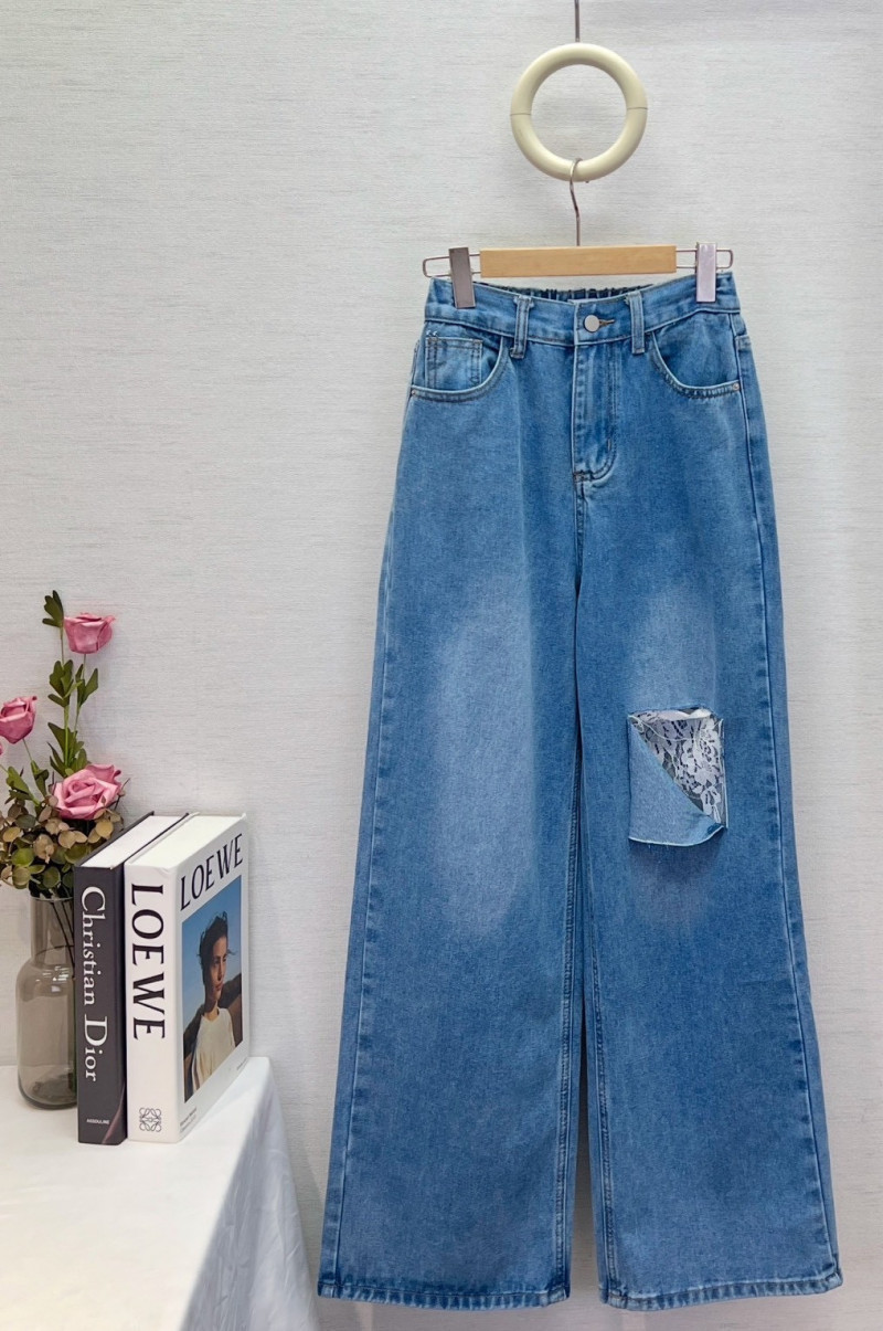 熱賣中🔥 即將售完A365設計款~牛仔破洞蕾絲寬褲