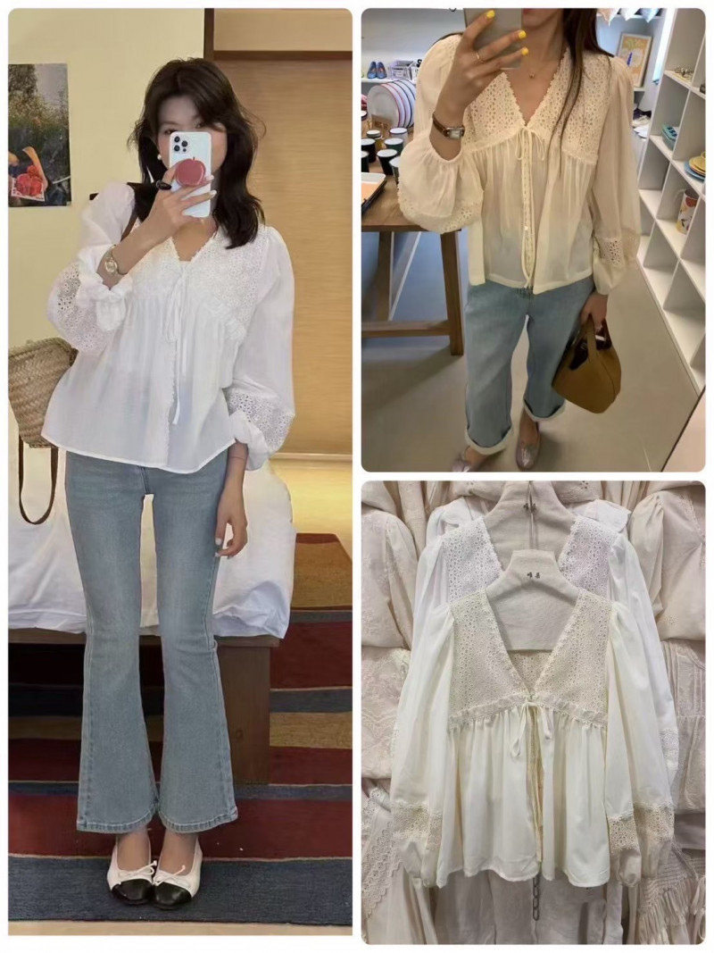 熱賣中🔥 即將售完A324綁帶v領緹花上衣(杏)