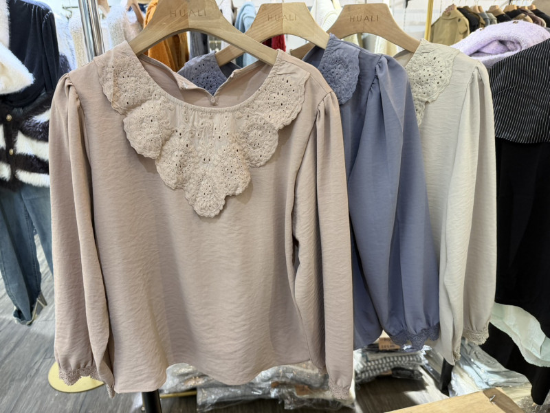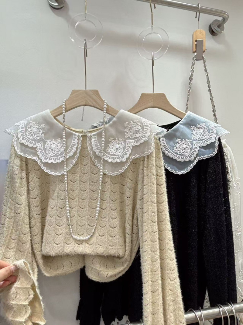 熱賣中🔥 即將售完A344設計款緹花領針織上衣(卡)