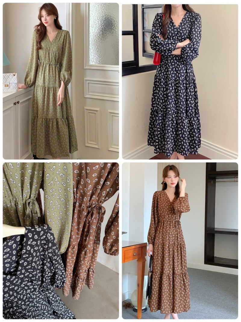 熱賣中🔥 即將售完A389後鬆緊碎花長裙(杏)