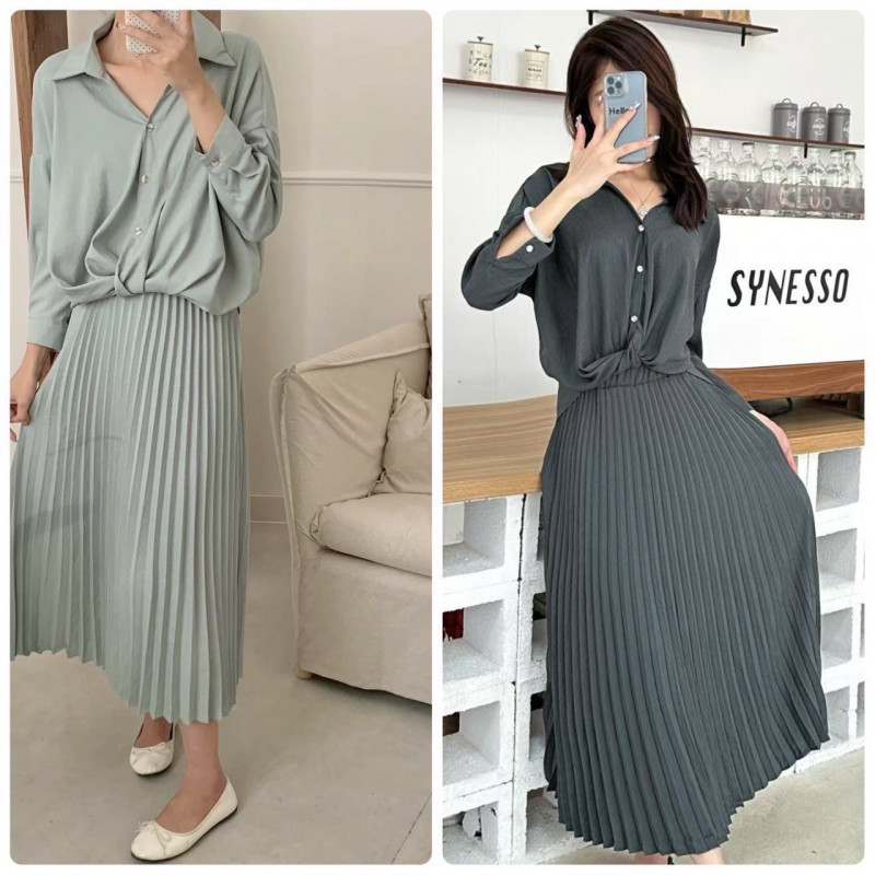 熱賣中🔥 即將售完A386知性扭結長裙套裝