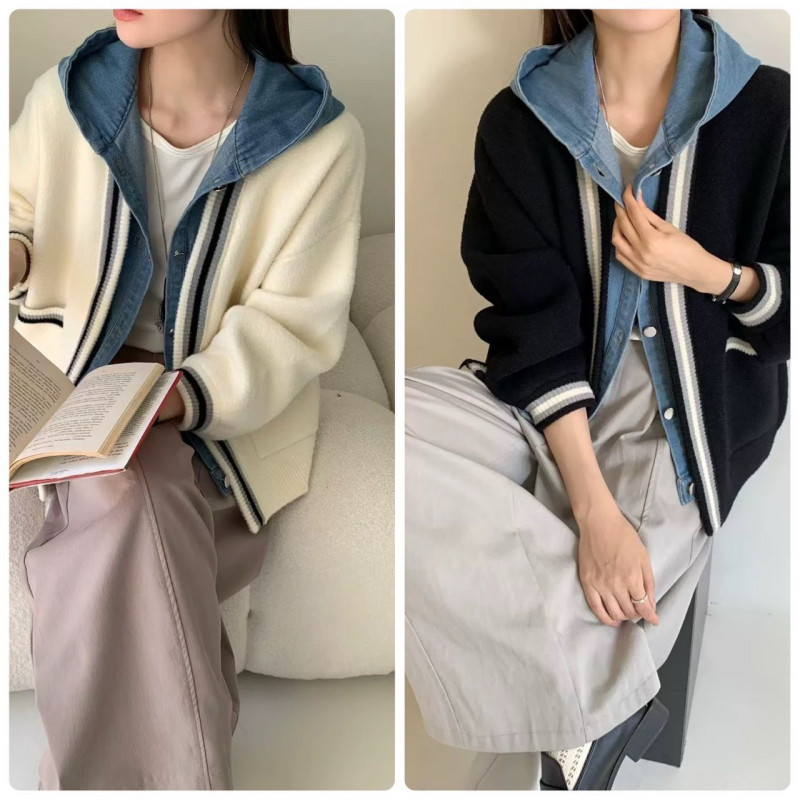 熱賣中🔥 即將售完A414牛仔針織拼接外套