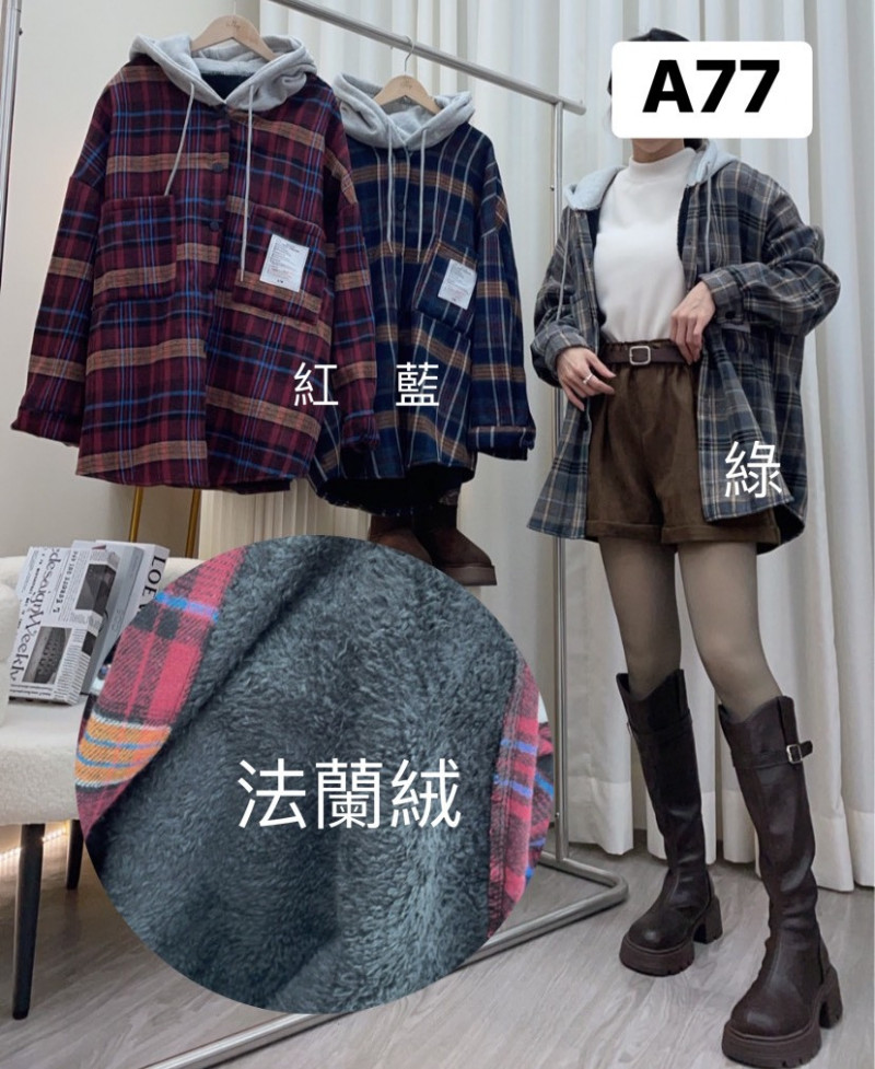 熱賣中🔥 即將售完A77款 (22917)內刷法蘭絨標籤抽繩連帽保暖格紋外套$399