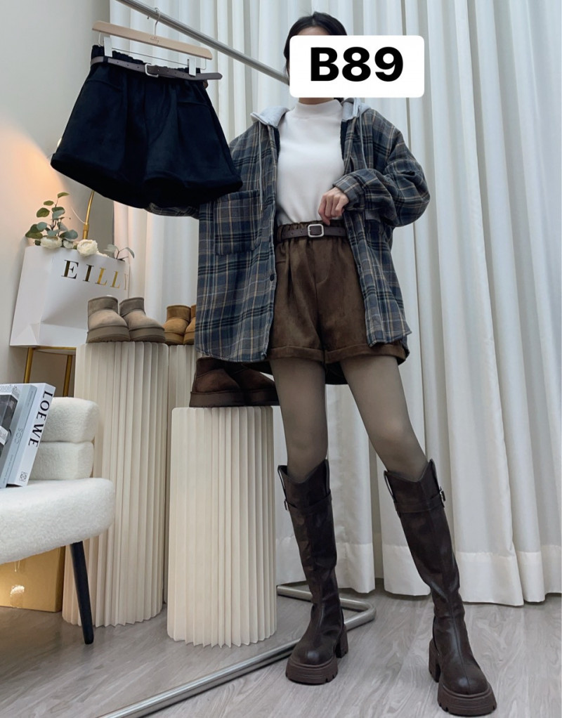 熱賣中🔥 即將售完B89款 (927)麂皮花苞腰頭大口袋下反摺短褲/附皮帶$199