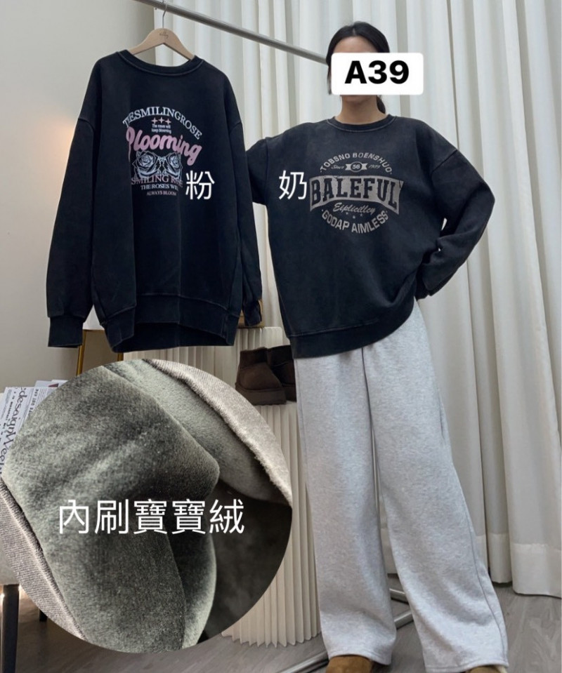 熱賣中🔥 即將售完A39款 字母刷色寶寶絨保暖上衣$299