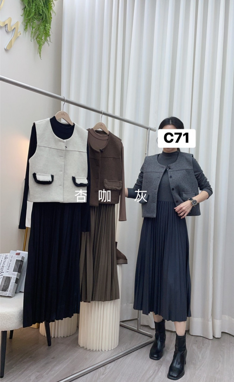 熱賣中🔥 即將售完C71款 (8826)高級感毛呢綁結背心成套洋裝$599