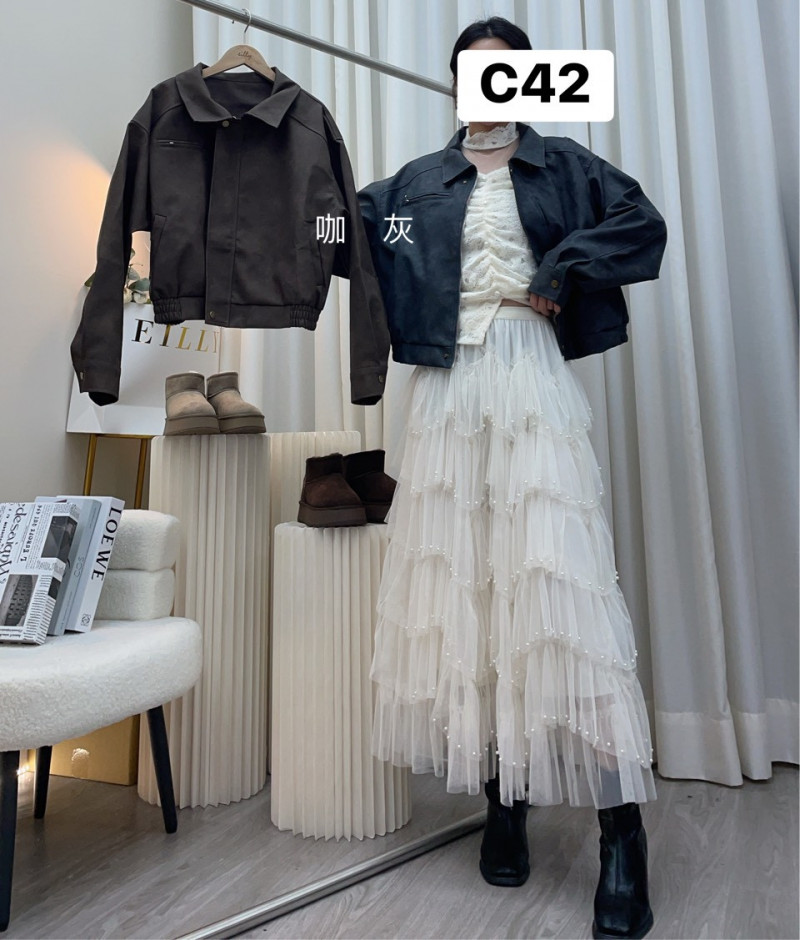 熱賣中🔥 即將售完C42款 (2467)霧感仿皮混色翻領外套$499