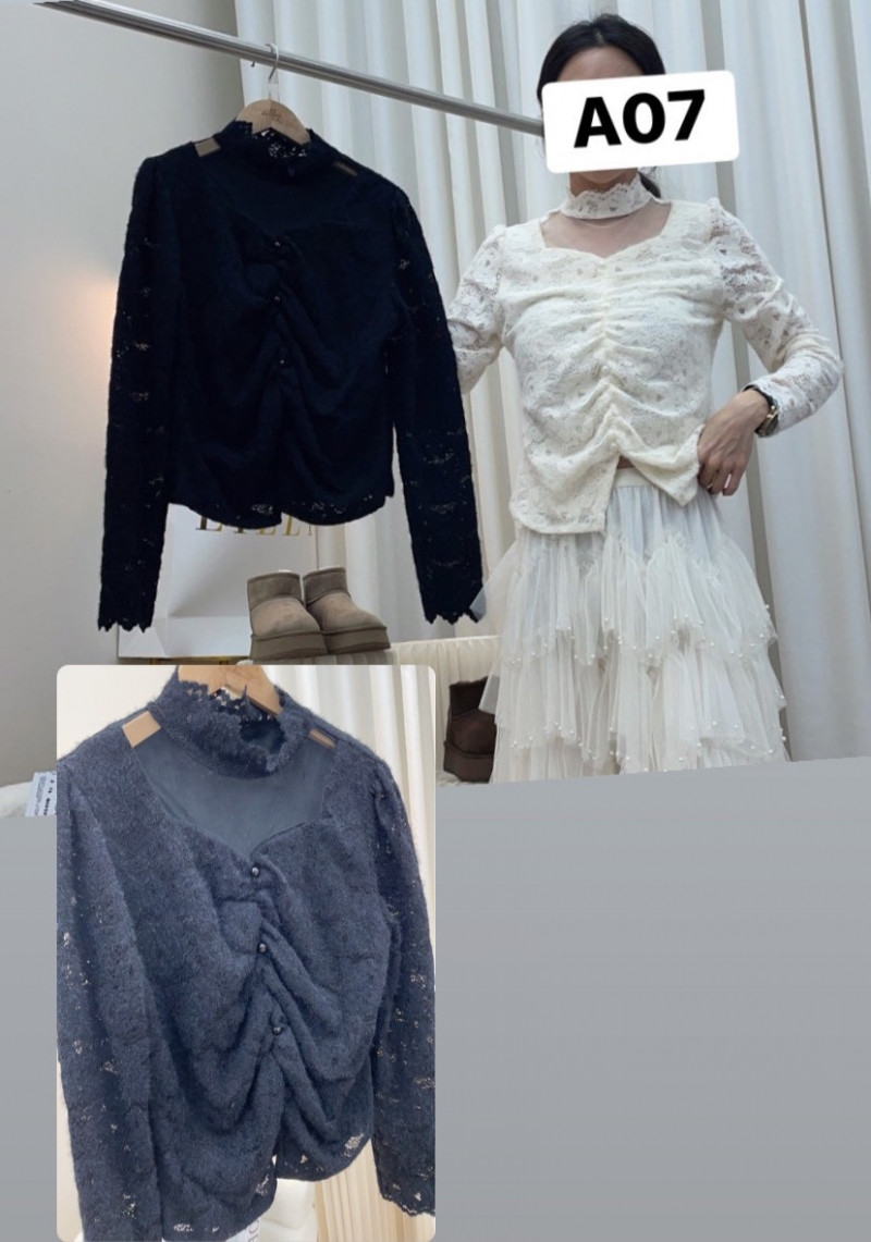 熱賣中🔥 即將售完A07款 (8090)性感簍空紗蕾絲抓皺上衣$220