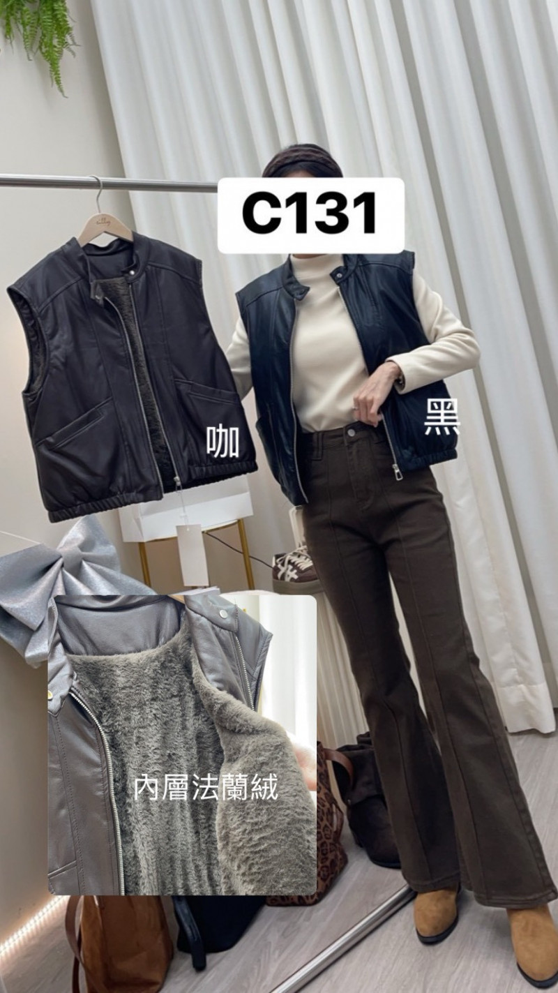 熱賣中🔥 即將售完C131款 (2522)暖絨騎士風蛋白霧感皮革背心$388