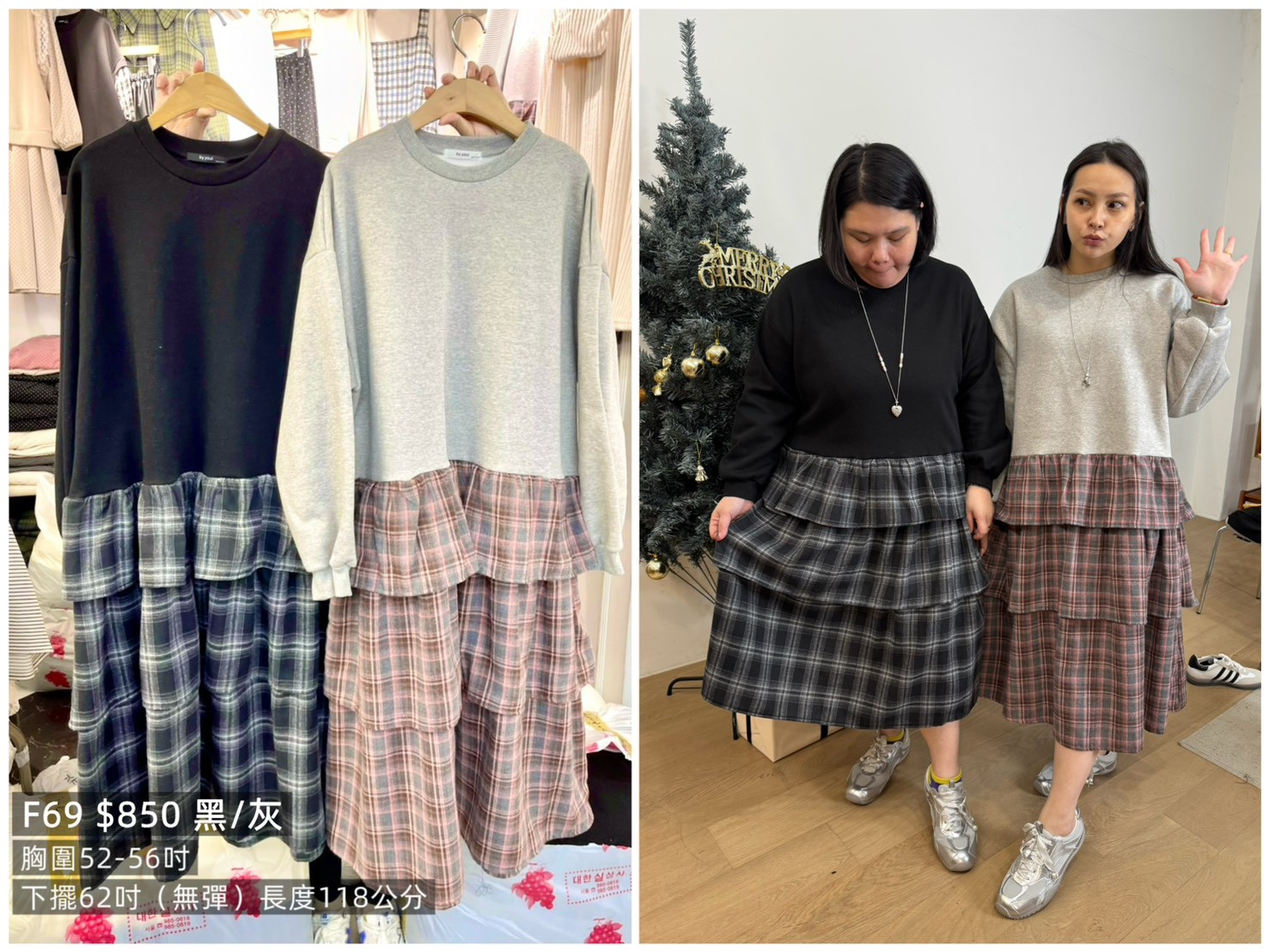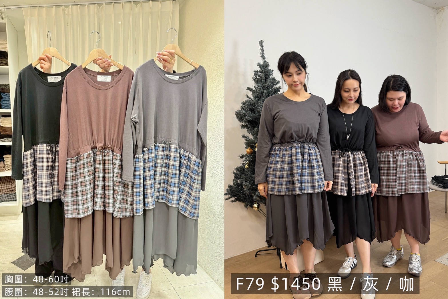 熱賣中🔥 即將售完F79拼接格紋縮腰長洋