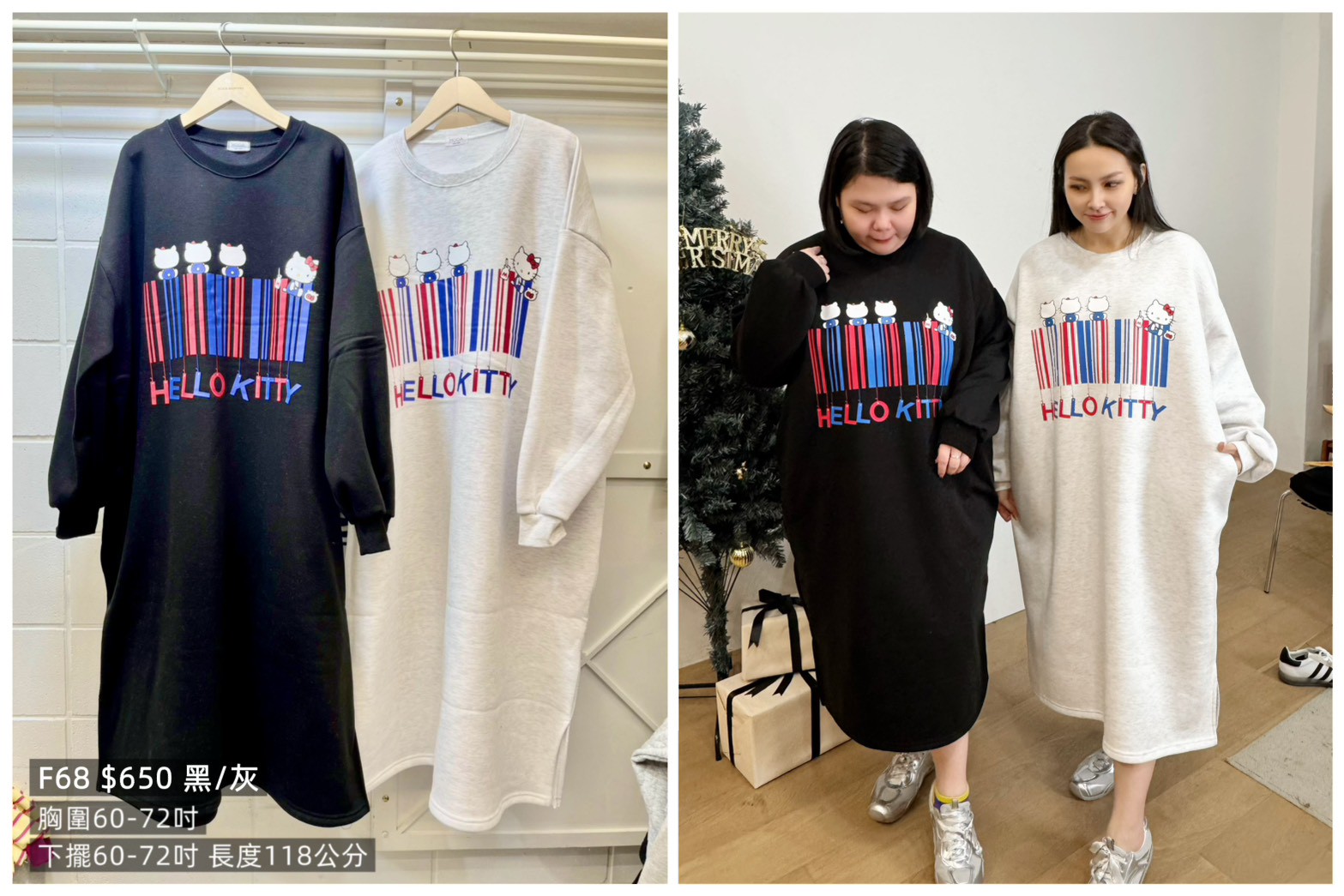 熱賣中🔥 即將售完F68條碼KITTY造型長版T洋