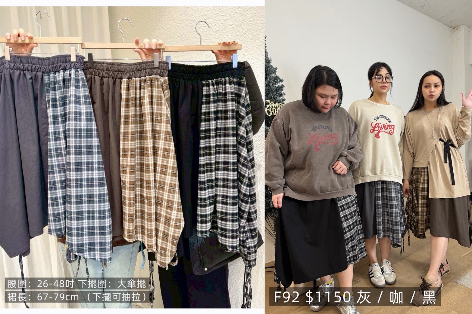 熱賣中🔥 即將售完F92拼布格紋綁帶傘擺裙