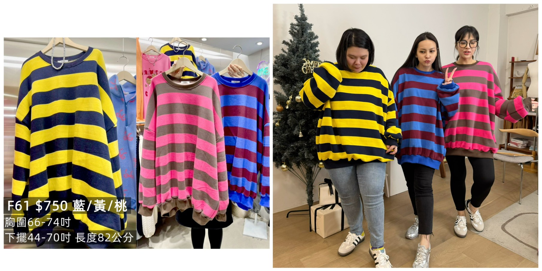 熱賣中🔥 即將售完F61跳色條紋寬鬆大學T
