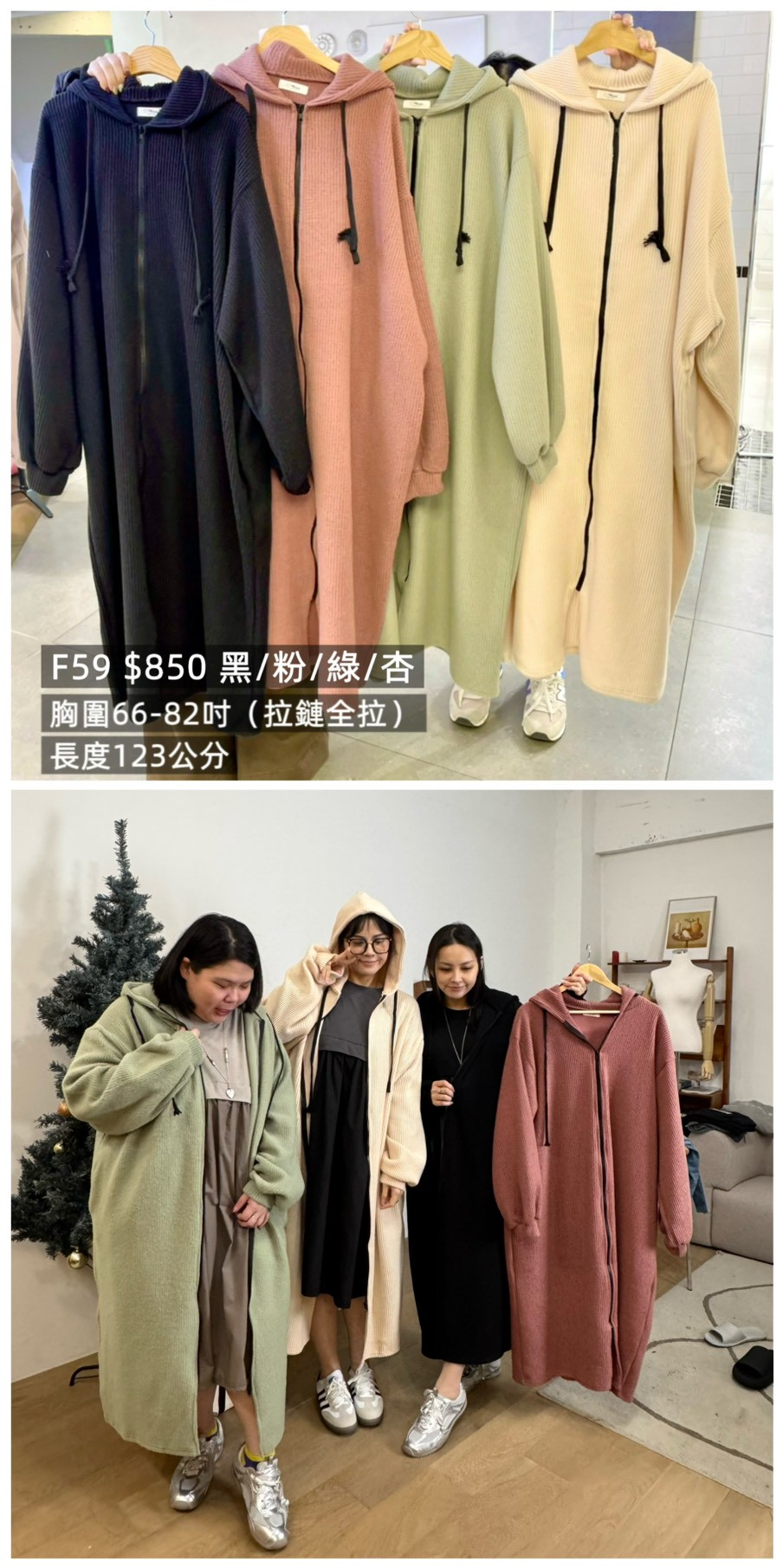 熱賣中🔥 即將售完F59坑條拉鍊造型連帽長版外套洋